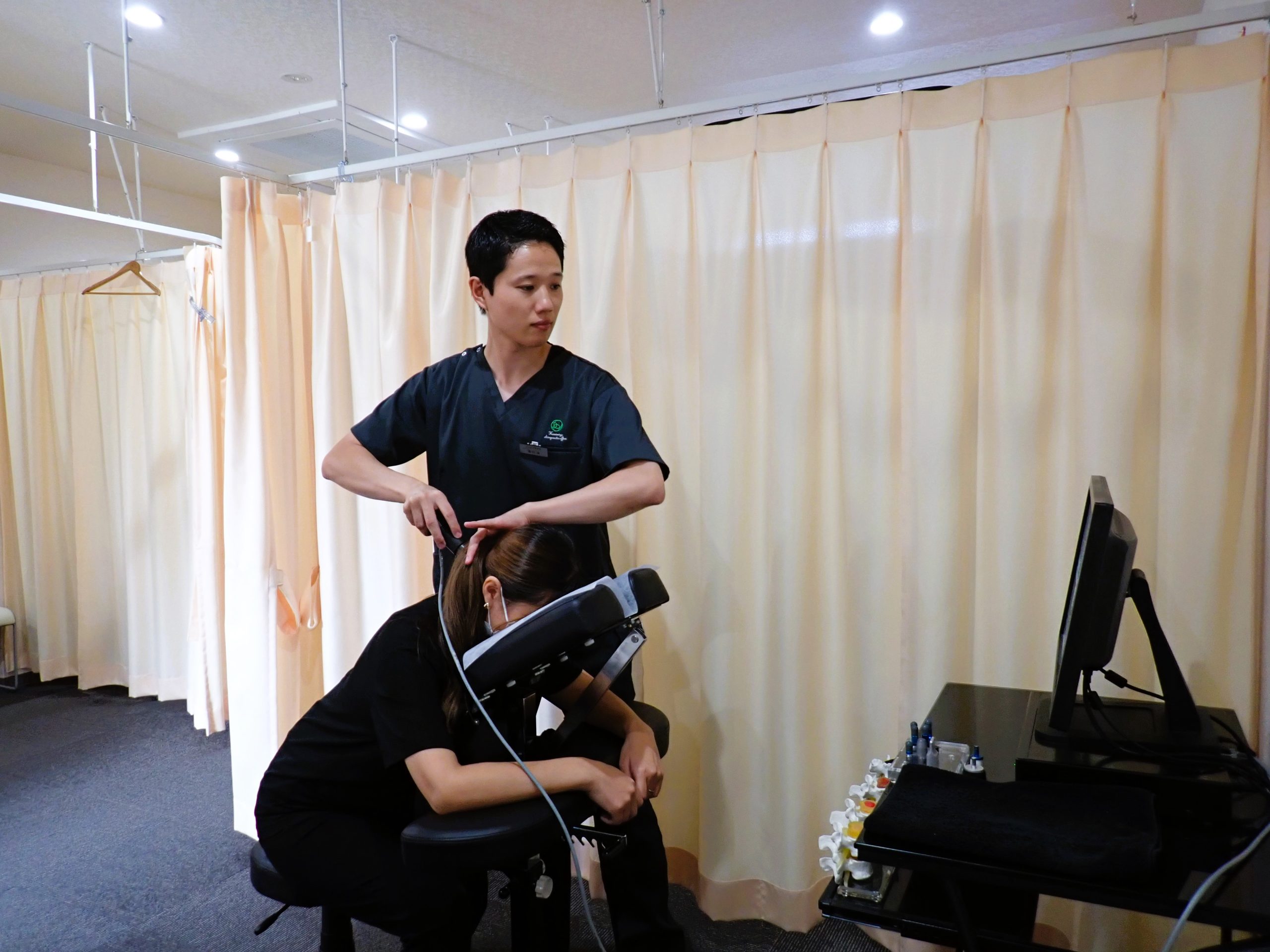 かみみぞ整骨院はコンピューター機器を使用することで、『骨格・神経・筋肉』のトリプルアプローチをおこないます。